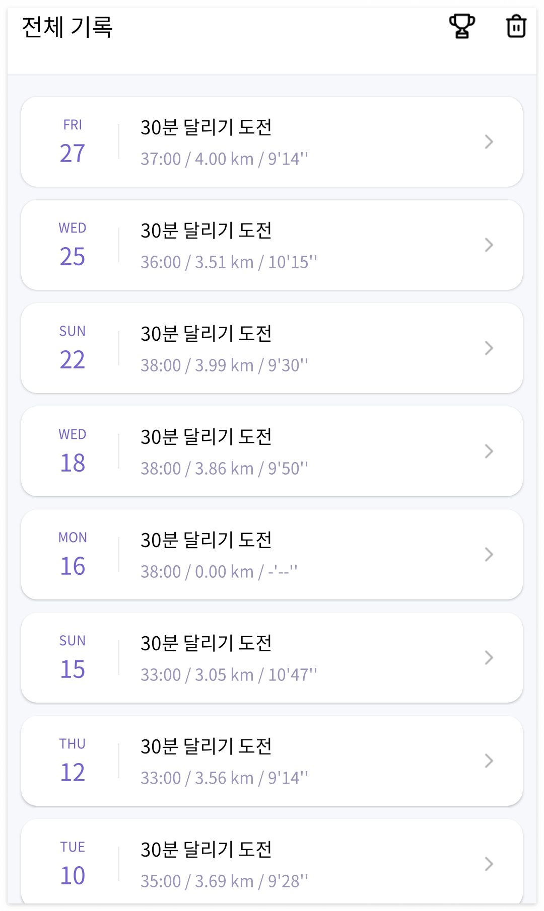 <초반 러닝 기록 - 30분 달리기 도전!>